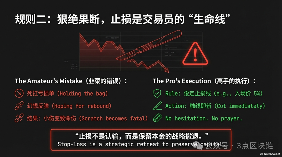 止损,是交易的“生命线”,也是顶级交易员“冷面”特质的核心体现。顶级交易员都懂得一个道理:在交易市场,亏损是不可避免的,没有任何一个交易员能够做到100%盈利。所以,他们从不害怕亏损,而是害怕“不止损”——一旦亏损扩大,不仅会吞噬之前的盈利,还可能导致本金亏光,甚至背上巨额债务。