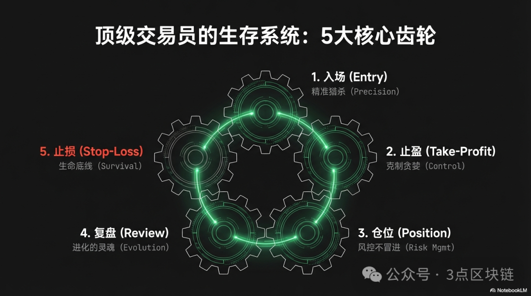 一套完整的交易体系,核心包含五个部分,每一个部分都不可或缺,每一个部分都需要顶级交易员日复一日地打磨和优化:
