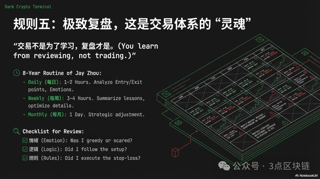 如果说入场、止损、止盈、仓位管理,是交易体系的“骨架”,那么复盘,就是交易体系的“灵魂”。顶级交易员都懂得“复盘是盈利的捷径”,他们每天、每周、每月,都会进行极致复盘,总结自己的交易经验和教训,优化自己的交易体系,让自己的交易体系,越来越完善、越来越精准。