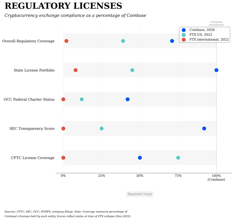 Coinbase 在 FTX 崩溃后最为合规,但这种合规来源于特朗普上台后对 SEC、CFTC、OCC 的持续改造,要求其采取更为加密友好的监管措施。
