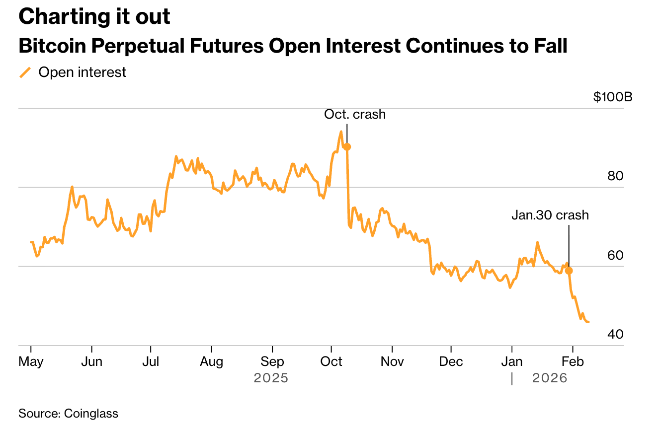 比特币永续合约(Perpetual Futures)的持仓量(Open Interest)未能从 10 月份开始的跌势中恢复,凸显了最近一轮复苏背后缺乏信心。Coinglass 的数据显示,目前的持仓量较 10 月份的峰值下降了约 50%。