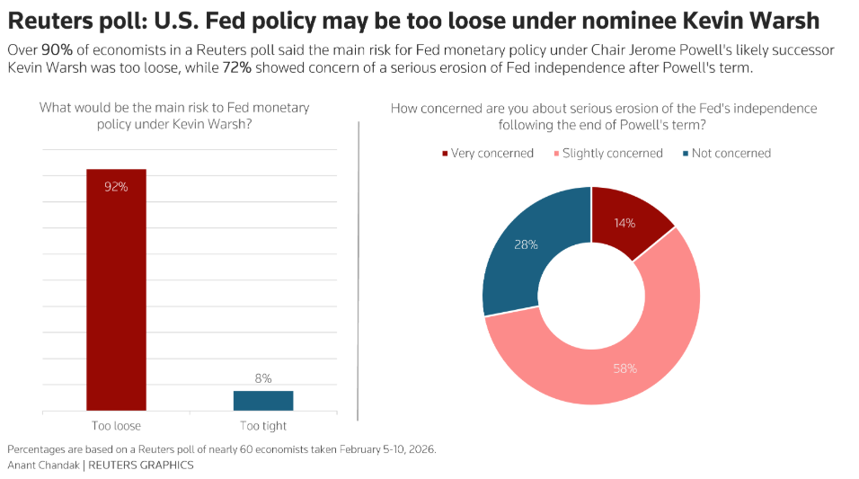 调查显示,大多数经济学家认为美联储在沃什的领导下可能偏鸽