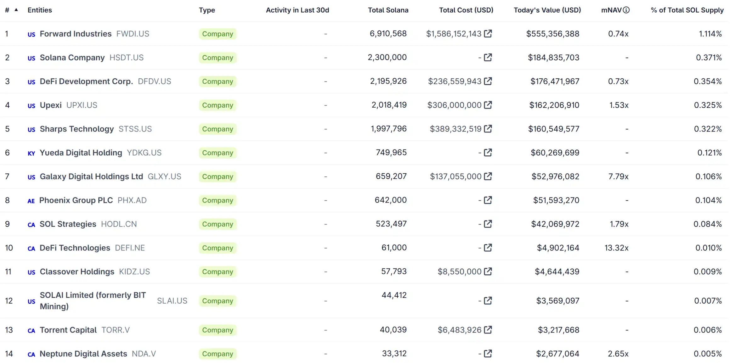 从数字资产财库(DAT,Digital Asset Treasury)的角度来看,2025 年,DAT 曾模式风靡一时,许多公开交易公司如 Forward Industries、Upexi 和 Sharps Technology 通过私募融资或债务发行,大量购买 SOL 作为财库资产。