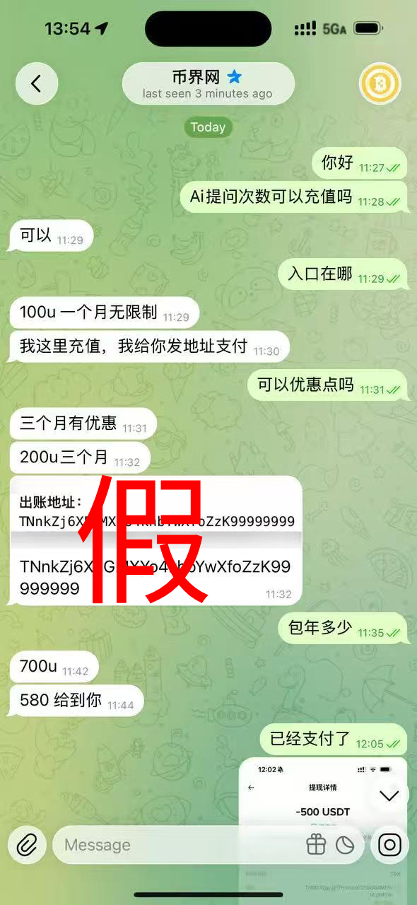 不法分子通常以 “无限制 AI 提问”“内部优惠套餐”等话术诱导用户,再以 “私下转账”“地址支付” 等方式骗取资金。我司从未推出过 “100U / 月无限提问”“580U 包年” 等此类非官方服务,此类信息均为虚假宣传。