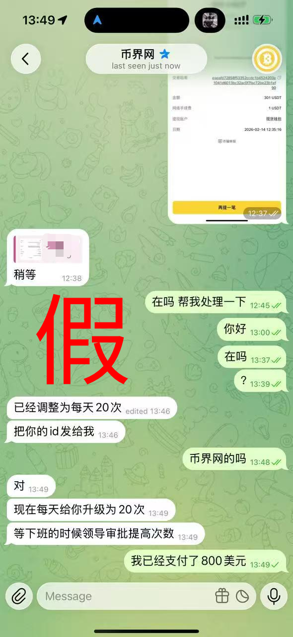 近日,我们监测到有不法分子假冒 “币界网” 工作人员,通过社交平台等渠道,以 “AI 提问次数充值”“升级 AI 服务权限” 等名义实施诈骗活动,严重侵害了用户的合法权益,也对我司品牌声誉造成了恶劣影响。