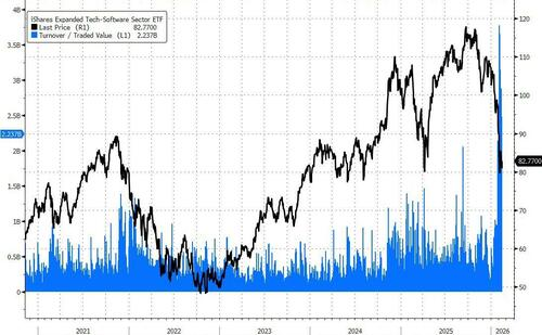 作为市场叙事的“震中”,软件行业的表现尤为典型。尽管指数层面看似平静,但在表面之下,对AI“落后者”的惩罚是无情的。随着越来越多的子行业受到审查,市场参与者对AI颠覆风险的担忧正在加剧。
