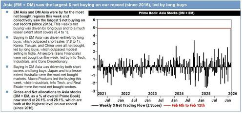 目前标普500指数今年以来在7000点关口前止步不前,未能实现突破,指数平静的表面之下暗流涌动。高盛的“AI领跑者与落后者”配对交易在上周创下了历史上最大的单日涨幅,但这主要是由做空“落后者”所驱动的。这种“先开火再瞄准”的做空情绪,正在软件等核心板块引发剧烈的叙事波动和风险转移。