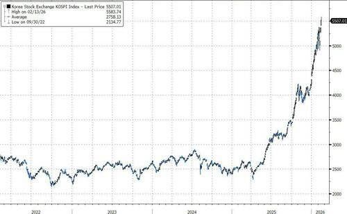 与此同时,由于美股的拥挤和估值压力,全球资本配置正在发生微妙但显著的转向。随着美国本土市场的叙事变得复杂,增量资金正加速流向海外。韩国和日本股市近期表现强劲,特别是韩国KOSPI指数在“企业价值提升计划”和强劲盈利预期的推动下,不仅自2024年底以来翻倍,更在近期创下了五年来的最佳单周表现,显示出投资者正在非美市场寻找新的增长避风港。