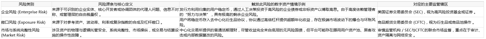 该模型的核心理念是测量“剩余风险”(Residual Risk)——即在充分应用了区块链密码学验证、不可篡改的智能合约以及严密的法律结构等缓解措施之后,仍然遗留存在的投资风险、杠杆风险或市场完整性风险 。模型将这些剩余风险精准划分为三个相互独立但可量化的维度: