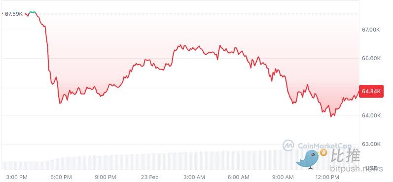 刚刚过去的这个周末,加密市场并未迎来喘息。比特币在周六、周日延续窄幅震荡后,于今日欧美交易时段再度承压,一度跌破6.4万美元关口,触及63,924.44美元, 创下2月6日以来的新低。截至发稿时,币价小幅反弹至6.48万美元附近,24小时跌幅近4%。