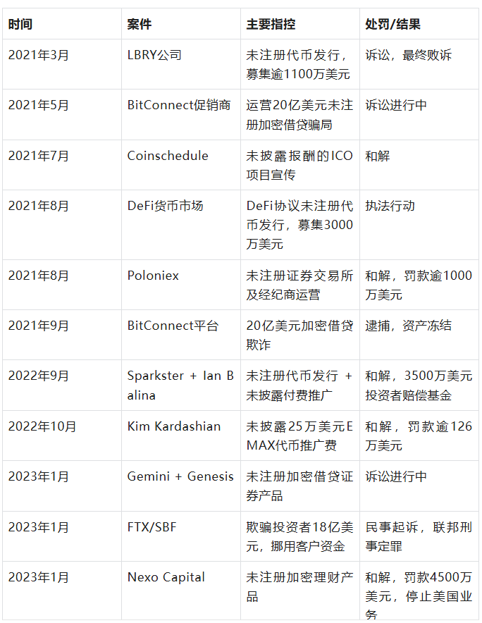 2023年是SEC对加密行业最猛烈的一年,执法行动涉及多个行业龙头。