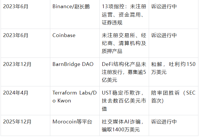 表1:SEC加密货币重大执法案件一览(2021–2025)