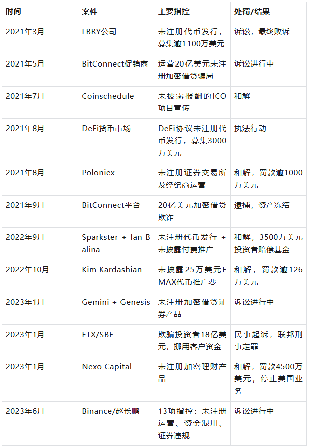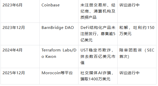 表1:SEC加密货币重大执法案件一览(2021–2025)