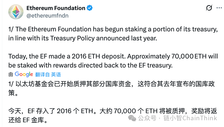 此前市场一直担忧基金会不定期卖币带来砸盘风险,这次官方带头锁仓质押。