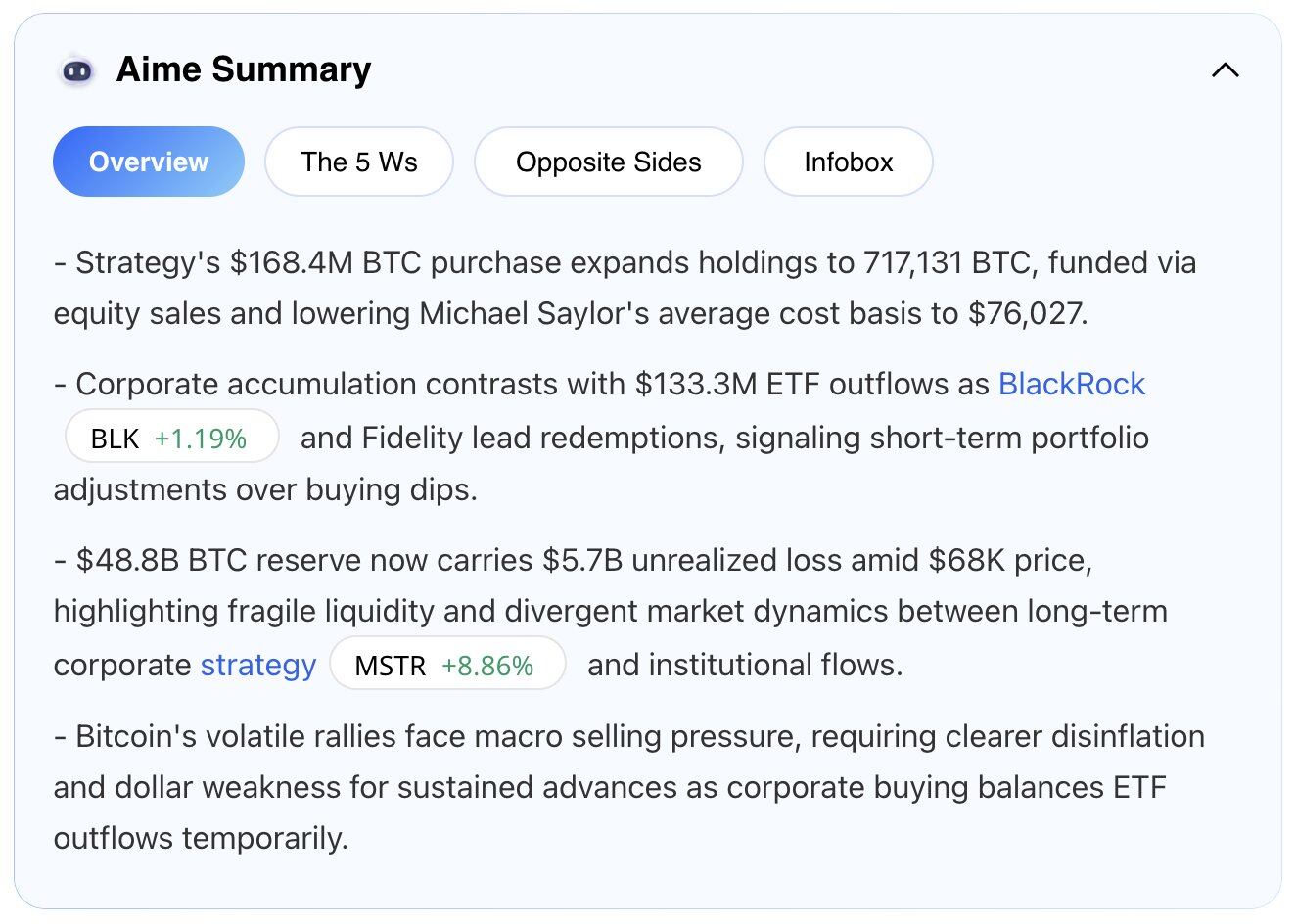 更大的结构性图景并未改变。2026 年前 8 周 ETF 净流出 45 亿美元,看上去很吓人。但 Strategy(Saylor 的公司)刚刚买入 3900 万美元的 BTC,占同期所有上市公司购币量的 99%。真正的大玩家并没有卖,他们更像是在等算法把活干完。