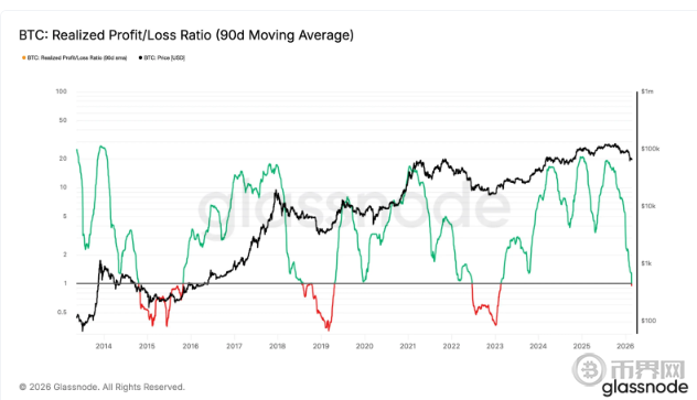 衡量市场盈亏的90天已实现盈亏比已跌破1