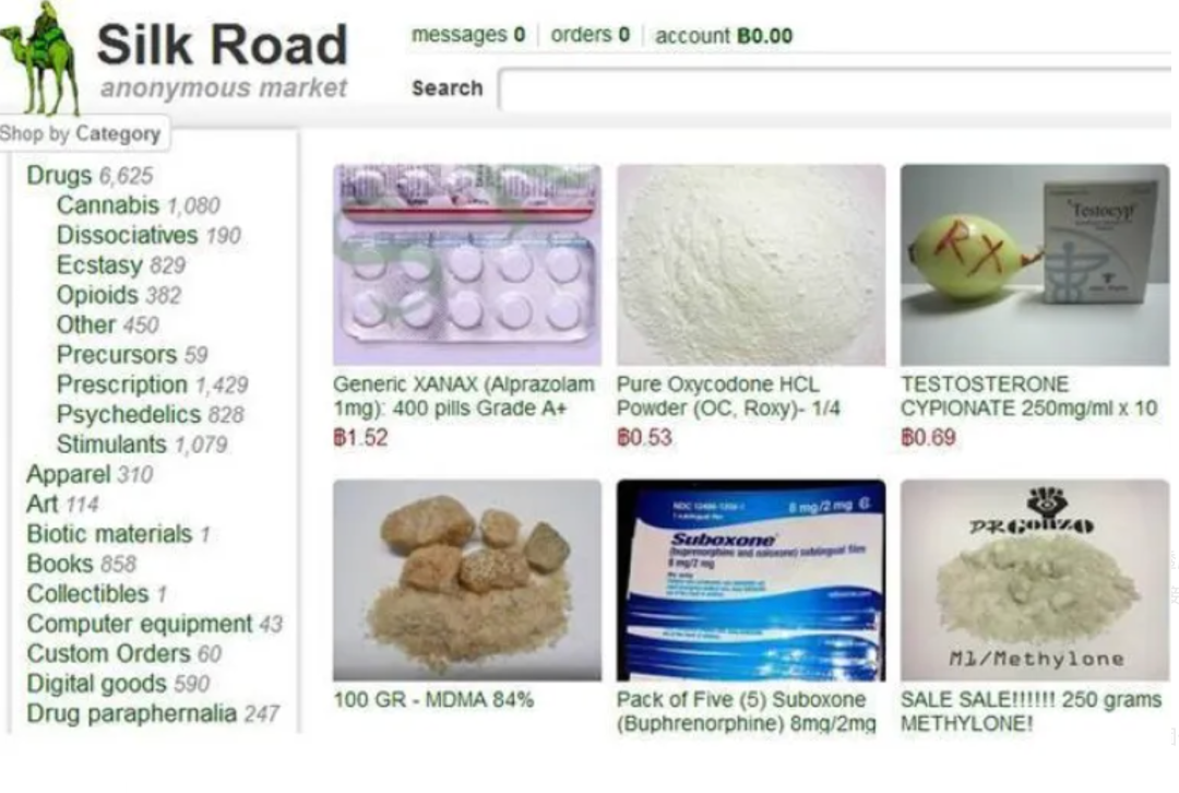 2011年,26岁的美国青年Ross William Ulbricht在Tor匿名网络中搭建起“丝绸之路”。平台以比特币为唯一支付手段,交易毒品、武器、假证件等非法商品。高峰期,其交易量一度占据当时比特币日交易总量的20%以上。