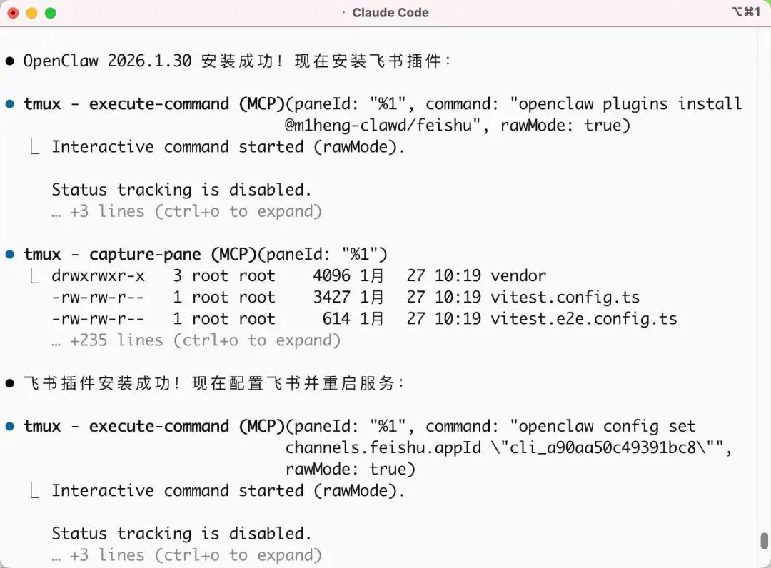 Claude Code 会自动去读 OpenClaw 的官方文档,执行安装命令,遇到依赖缺失或者版本不对的问题,它会自己排查并修复。
