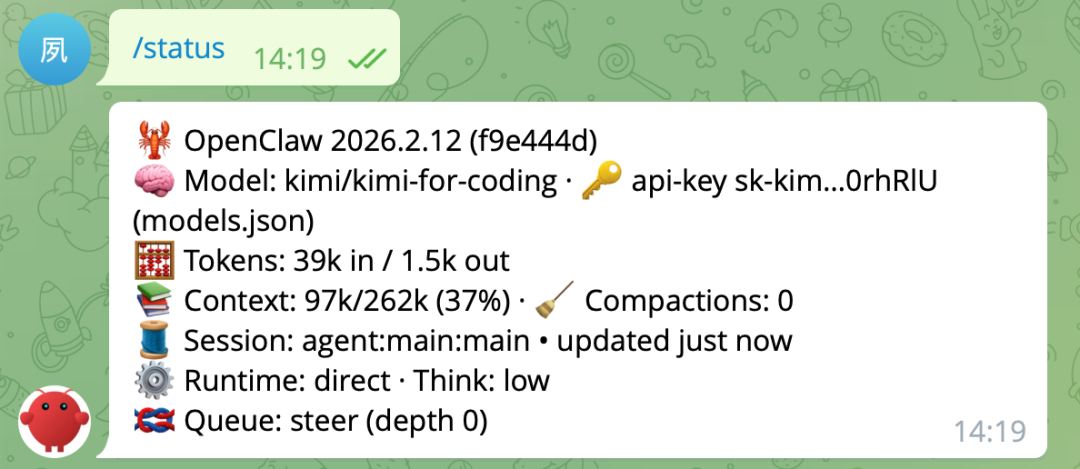 当小龙虾卡住不回复的时候,先发这个看看怎么回事。