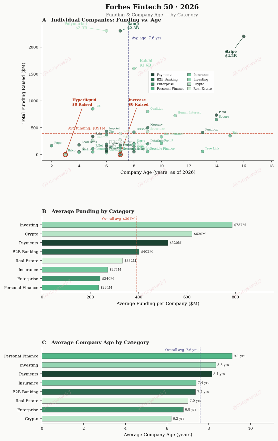 从福布斯的数据来看,支付作为 Fintech 赛道标的,平均要做 8.1 年才能上榜,但是 Crypto 只要 6.2 年。