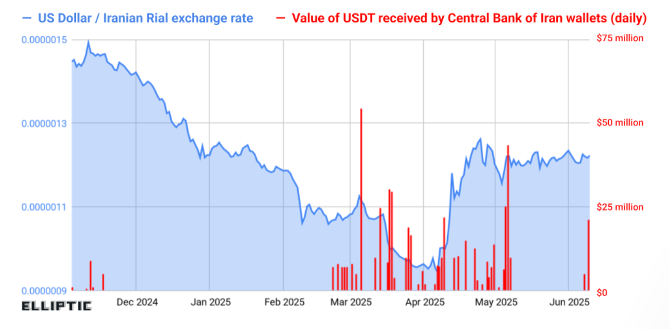Elliptic的另一项分析发现,伊朗央行在2025年至少积累了5.07亿美元的美元第纳尔,其目的可能是为了稳定里亚尔汇率并为贸易提供资金。但这一努力基本失败,数据显示里亚尔对美元的汇率已贬值超过96%。