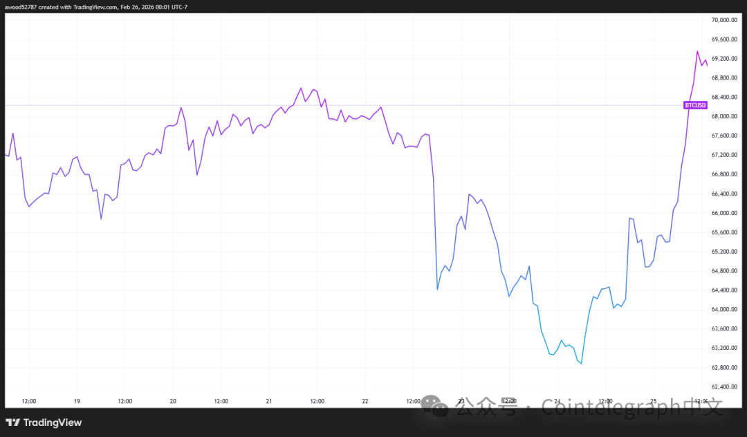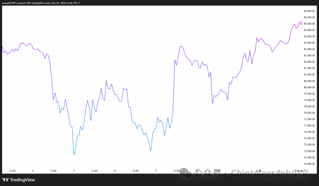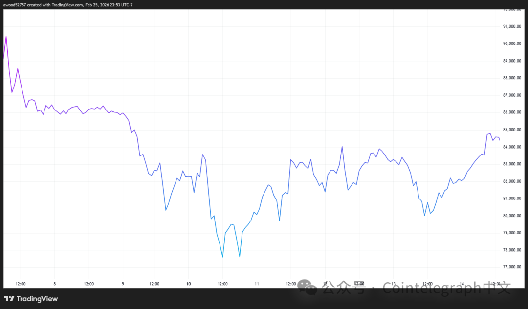在特朗普声称将与丹麦达成协议后,比特币价格短暂企稳。但由于贸易与全球紧张局势升级,一周后比特币下跌6%。