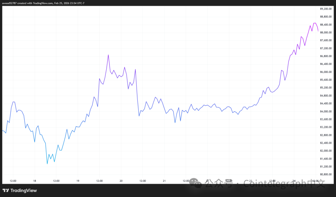 WLFI交易获批后数小时,比特币先跌后涨,当日涨1.8%,一周上涨1.96%。