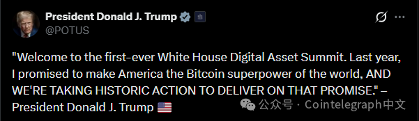 随后,白宫举办了首次“加密峰会”,聚集行业领袖与官员共商政策。特朗普表示:“这是经济增长和金融创新的重大机遇,会极大推动行业发展。”