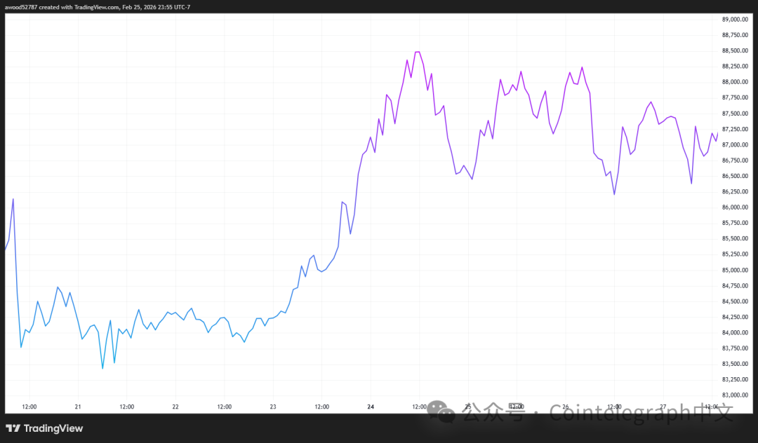 尽管影响不及他在迈阿密的首次加密主题亮相,但还是对比特币价格产生了短暂正面影响。不过,CLARITY法案的立法进程在参议院已经陷入僵局,比特币价格也很快回落。