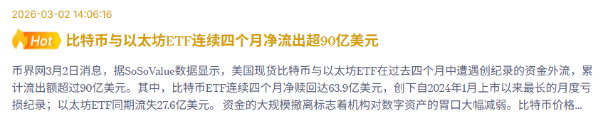 根据币界网的最新消息报道,比特币和以太坊现货ETF已经连续四个月出现资金净流出,累计资金规模竟然超过90亿美元!
