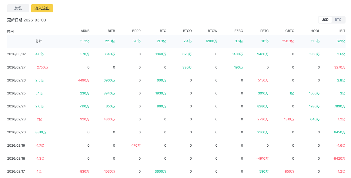 昨晚,美国比特币现货ETF交易时段,华尔街净流入资金总额高达4.58亿美元,其中贝莱德净流入2.6亿美元,富达净流入接近1亿美元。