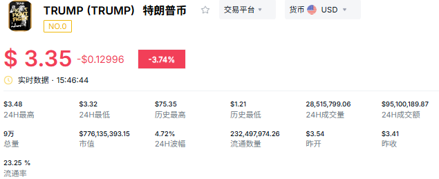 3月4日特朗普币最新报价3.35美元