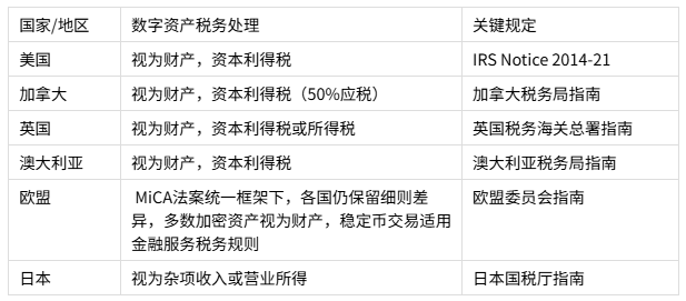 不同国家对数字资产的税务处理不太一样,我们来看看几个主要国家的情况: