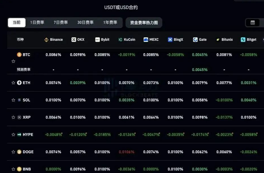 要理解这波行情的意义,首先要看懂资金费率这个指标。它本质上是一个多空情绪的压力表——当资金费率大于0.01%时,代表市场普遍看多,多头需要向空头支付持仓费用;当费率小于0.005%时,则代表市场普遍看跌。就在几天前,市场还完全是另一副面孔。
