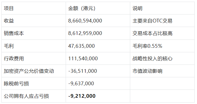 2025年921万港元的账面亏损,并非核心业务经营恶化的信号,而是战略投入期的主动选择:3651万港元的加密资产公允价值亏损为非现金项,不影响现金流;1.12亿港元的行政费用聚焦于私行服务体系搭建,是为长期盈利铺路;而2024年FTX索赔权处置带来的8590万港元一次性收益,进一步放大了当期账面亏损的对比效应。