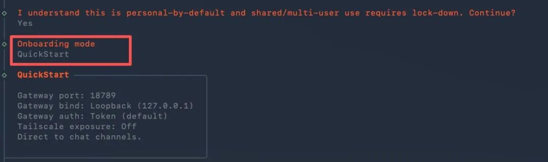 OpenClaw 默认是给个人用的,如果你想让很多人共享使用(比如团队协作),就需要做好安全限制。对于个人使用者来说,直接选默认就行。