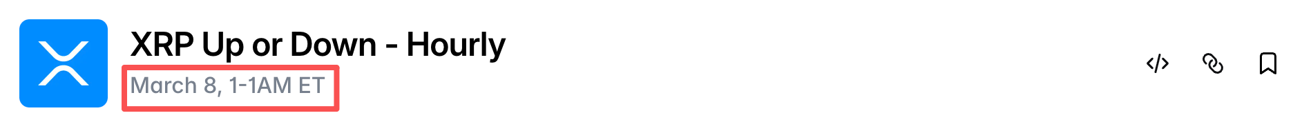 As shown in the Polymarket front-end interface,This may be because 2:00 did not exist in yesterday's Eastern Time time, and the current time period for this batch of events is "March 8, 1-1 AM ET" (i.e., 1:00 AM - 1:00 AM on March 8).However, under normal timing conditions, such events should present a 1-hour time cycle (for example, the same event the previous day would be "March 7, 1-2 AM ET", i.e., 1:00 - 2:00). If the impact of daylight saving time is taken into account, the more reasonable time cycle for this batch of events should be "March 8, 1-3 AM ET" (i.e., 1:00 - 3:00, which is still 1 hour in essence).
