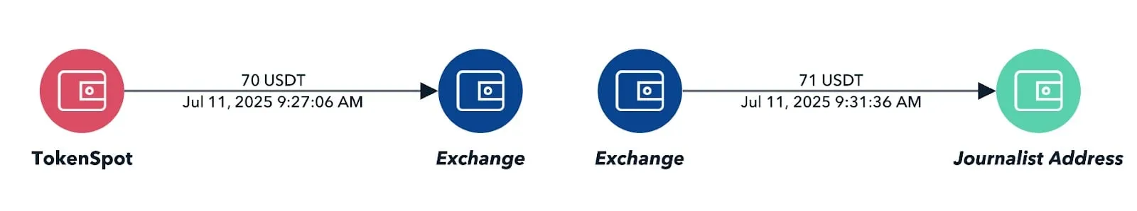 “While TRM observed several other transactions of a similar amount sent around the same time to an Asia-based exchange, the exchange used to send the funds to the Moldovan journalist, it seems most likely to originate from TokenSpot, given its close association with A7 and the Russian government,” TRM Labs Senior Blockchain intelligence Analyst Chris Keegan told Decrypt. He added that the firm was unable to locate the source of the second payment linked to the undercover journalist.