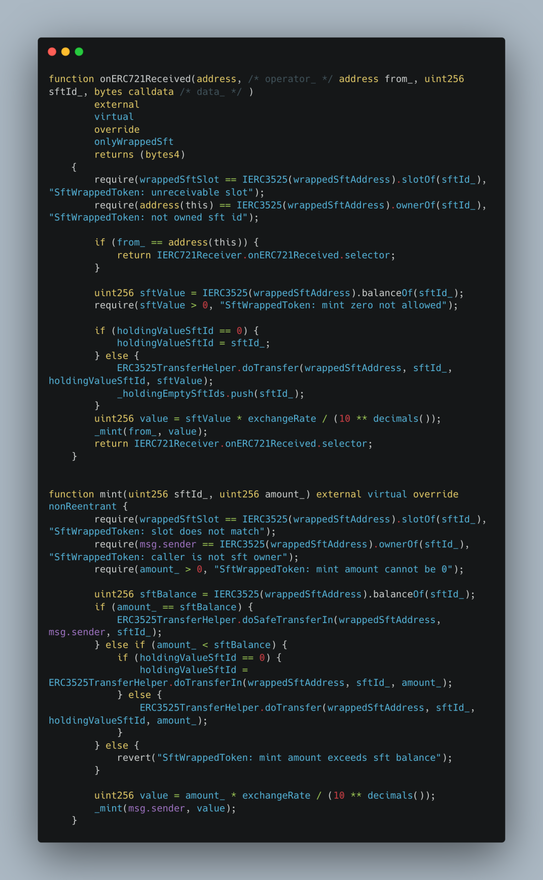该攻击主要是利用了BRO合约中的一个逻辑漏洞:mint()会把 ERC-3525 代币通过 safeTransferFrom() 转移到wrapper中,并触发onERC721Received();回调函数会铸造一次BRO,而外部的mint()会再次铸造相同的代币。