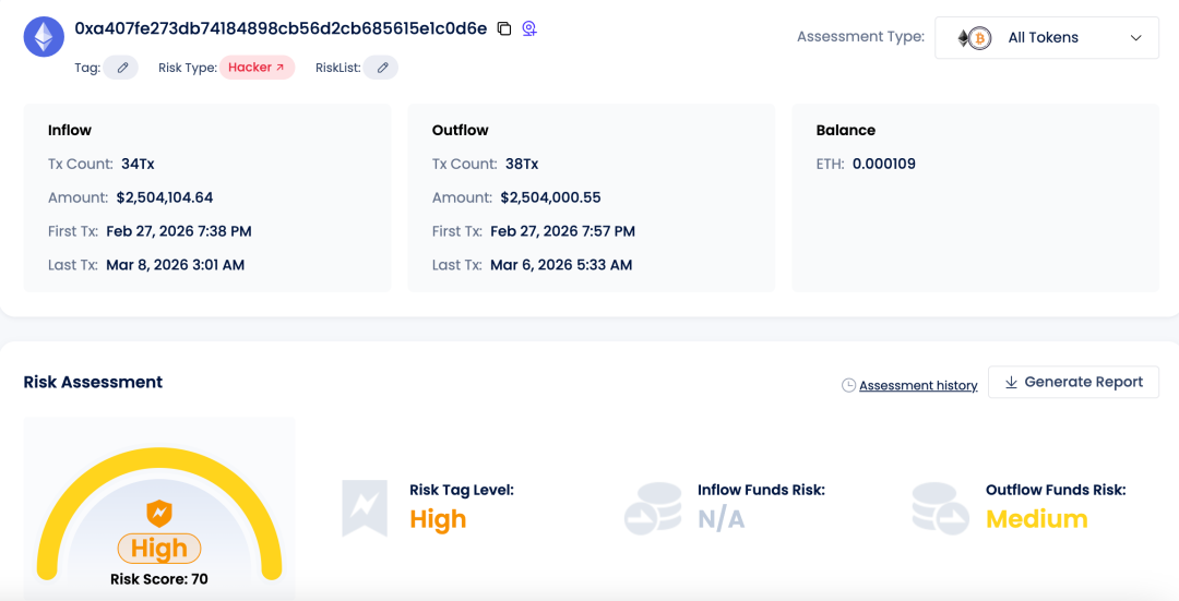 以上地址均已被Beosin KYT标记为高风险地址,以攻击者地址为例: