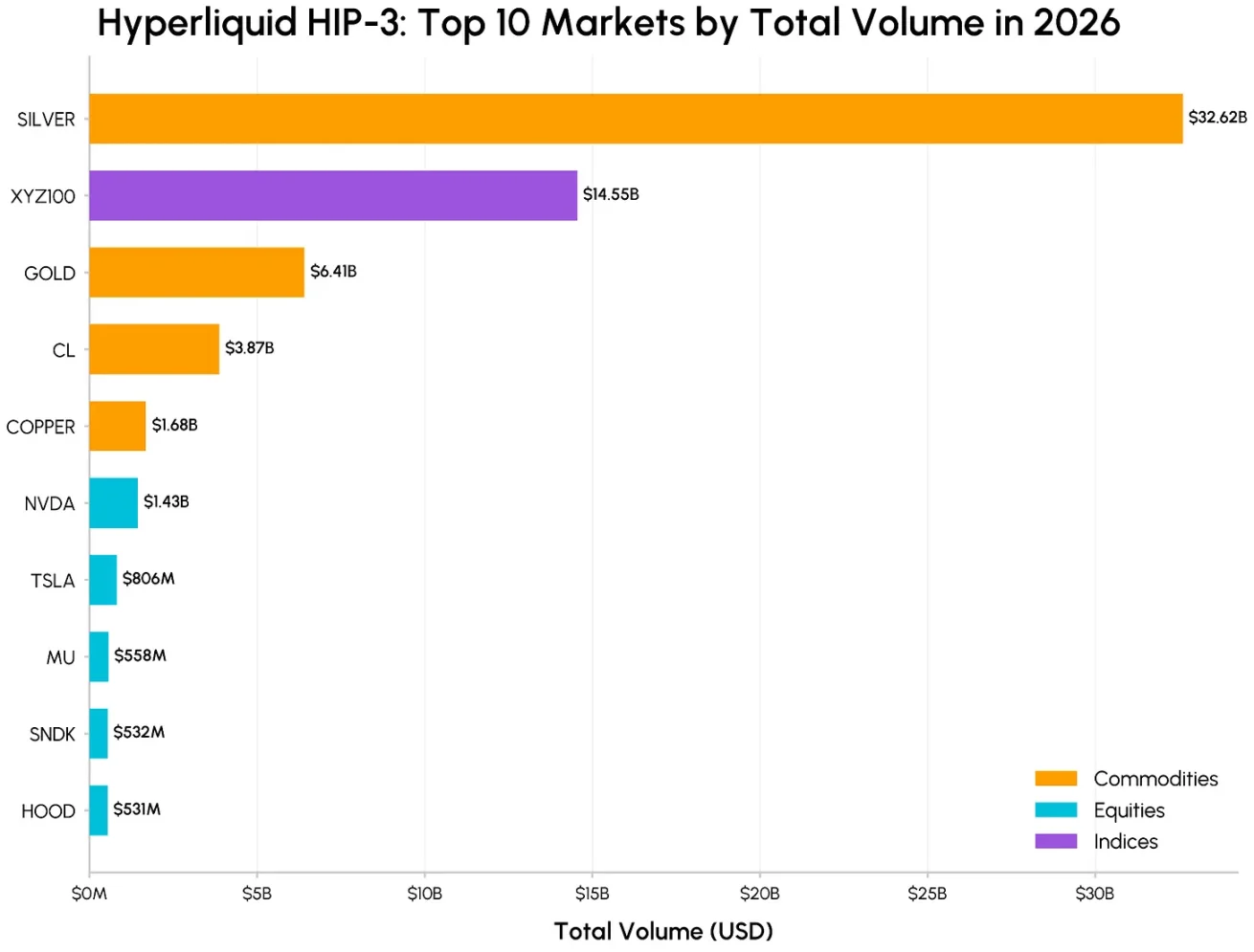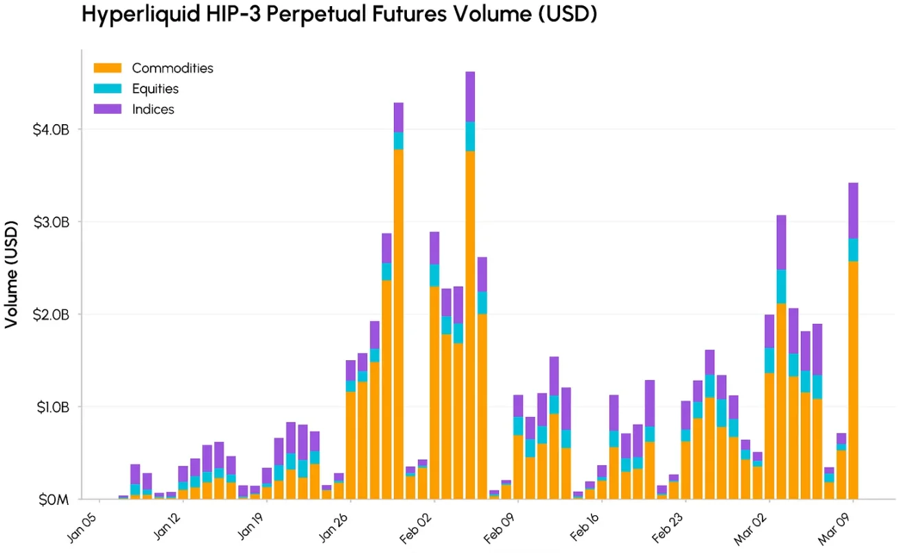 这些市场的交易量仍低于原油和贵金属,但完善了 HIP‑3 的定位: