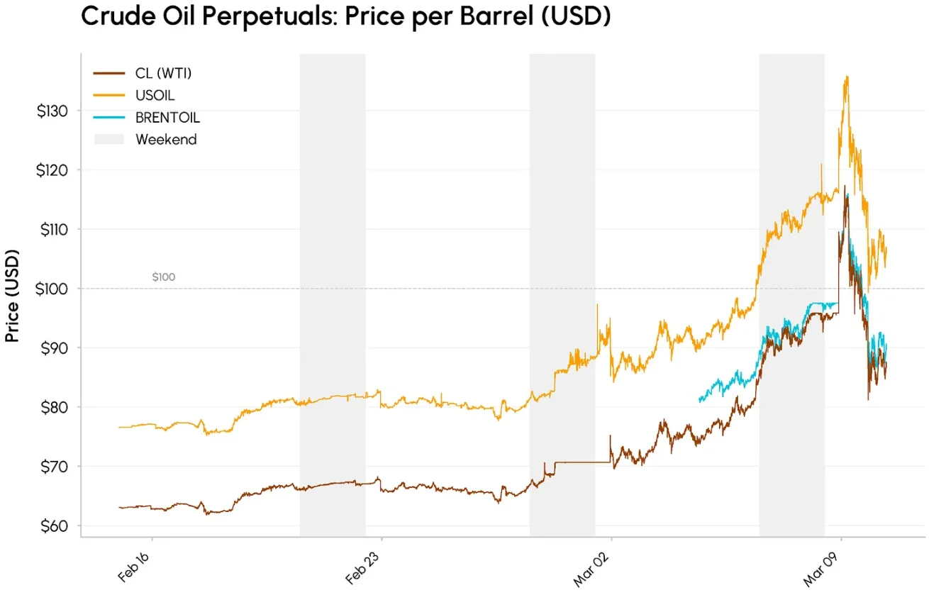 当美以袭击伊朗设施、扰乱供应路线并引发霍尔木兹海峡担忧时,传统期货休市,而链上原油永续合约在几分钟内完成价格重估。