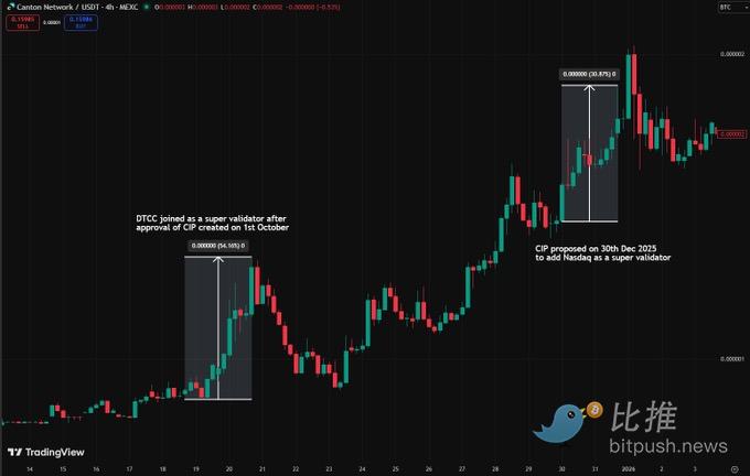 主要金融机构宣布成为超级验证者的消息已成为短期价格催化剂。在确认 DTCC 和纳斯达克成为超级验证者后,CC 在随后的两天内分别跑赢 BTC 54% 和 31%。这一变动可能反映了市场信心的增强,即全球认可的金融机构正在基础设施和治理层面(而非仅仅在应用层面)对网络做出承诺。