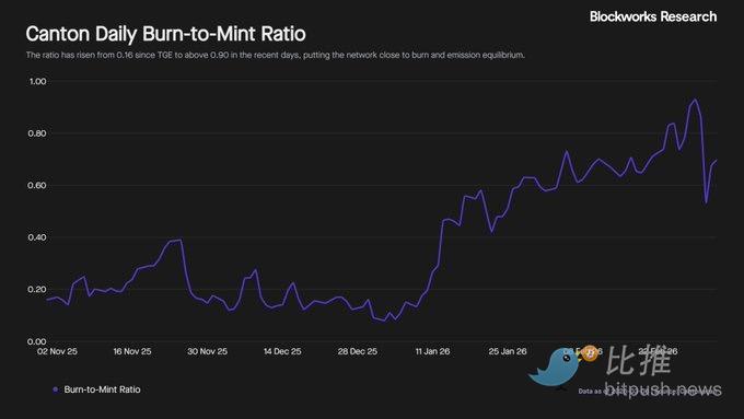 按当前速度,Canton 正在接近每日销毁量与每日排放量持平的平衡点。若销毁比持续超过 1,网络将进入净通缩,这将直接解决投资者的主要担忧。