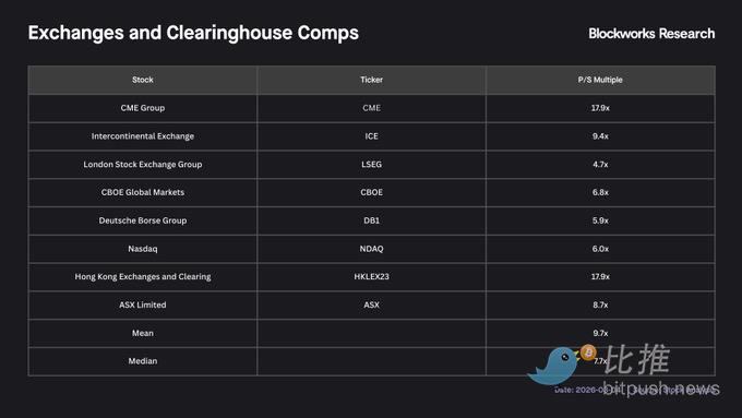 原因 2: 市场对 Canton 角色定位的解读。市场目前将其视为金融基础设施而非通用型公链。与 CME、Nasdaq、ICE 和 LSEG 等传统金融市场基础设施提供商(交易倍数通常在 8 倍左右)相比,Canton 的估值与其更为一致。