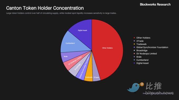 代币集中度仍是潜在风险。 流通中约 54% 的 CC 由少数网络参与者持有,尽管其中许多余额是运营奖励而非投机性持仓。
