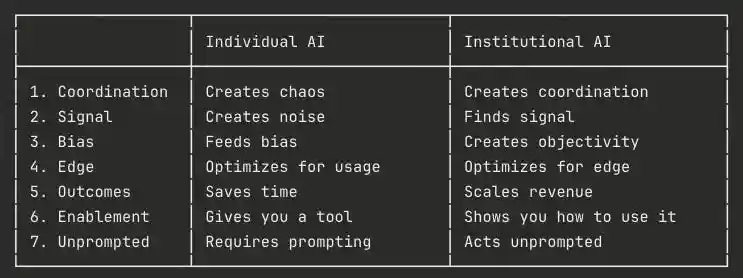 This article will delve into seven key dimensions that differentiate between "institutional AI" and "personal AI." Companies across the B2B AI sector over the next decade will be built upon these distinctions:
