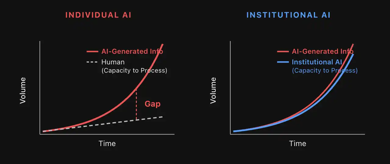 Caption: AI-generated junk from personal productivity tools is multiplying exponentially. Humans can no longer sift through the noise; a new class of institutional-grade AI products is needed.