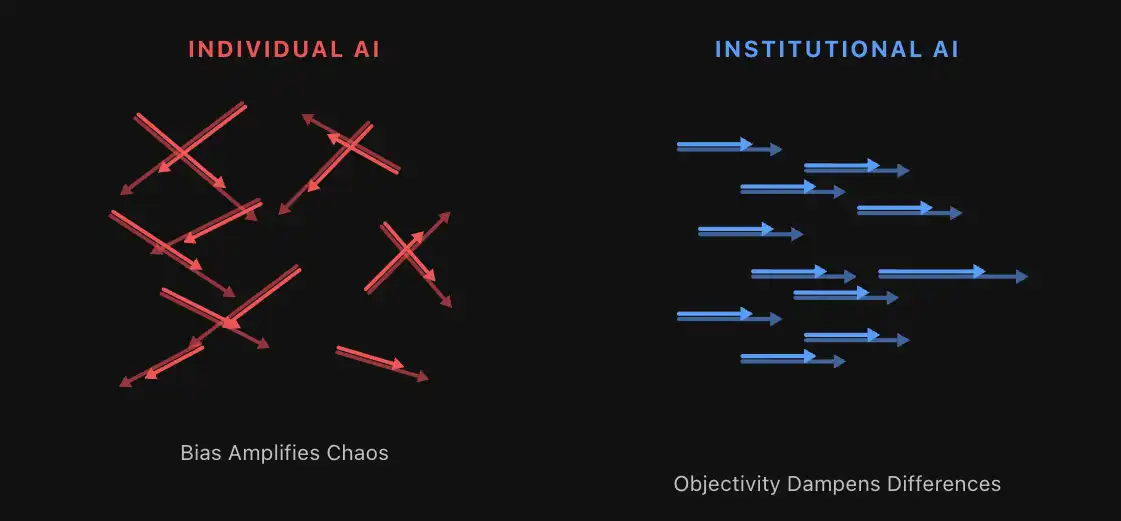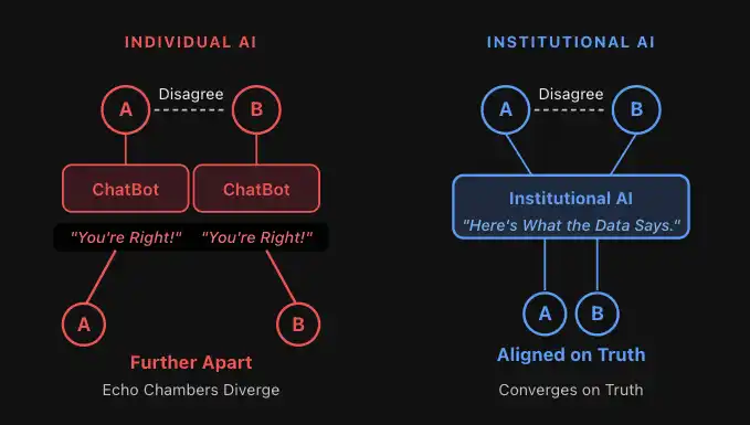 Institutional AI must play this role. It shouldn't be trained by RLHF to please users or conform to their beliefs, but rather to challenge their biases. It should provide positive feedback when behavior is efficient and draw hard lines and force corrections when it deviates from the right path.