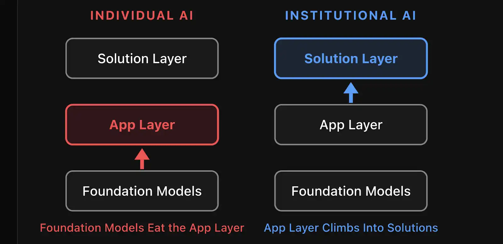 Institutional intelligence is the solution layer. And the solution layer—where the results are—will accumulate lasting value and capture the greatest potential for profit.